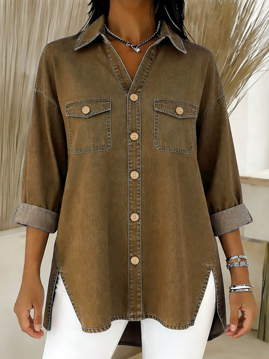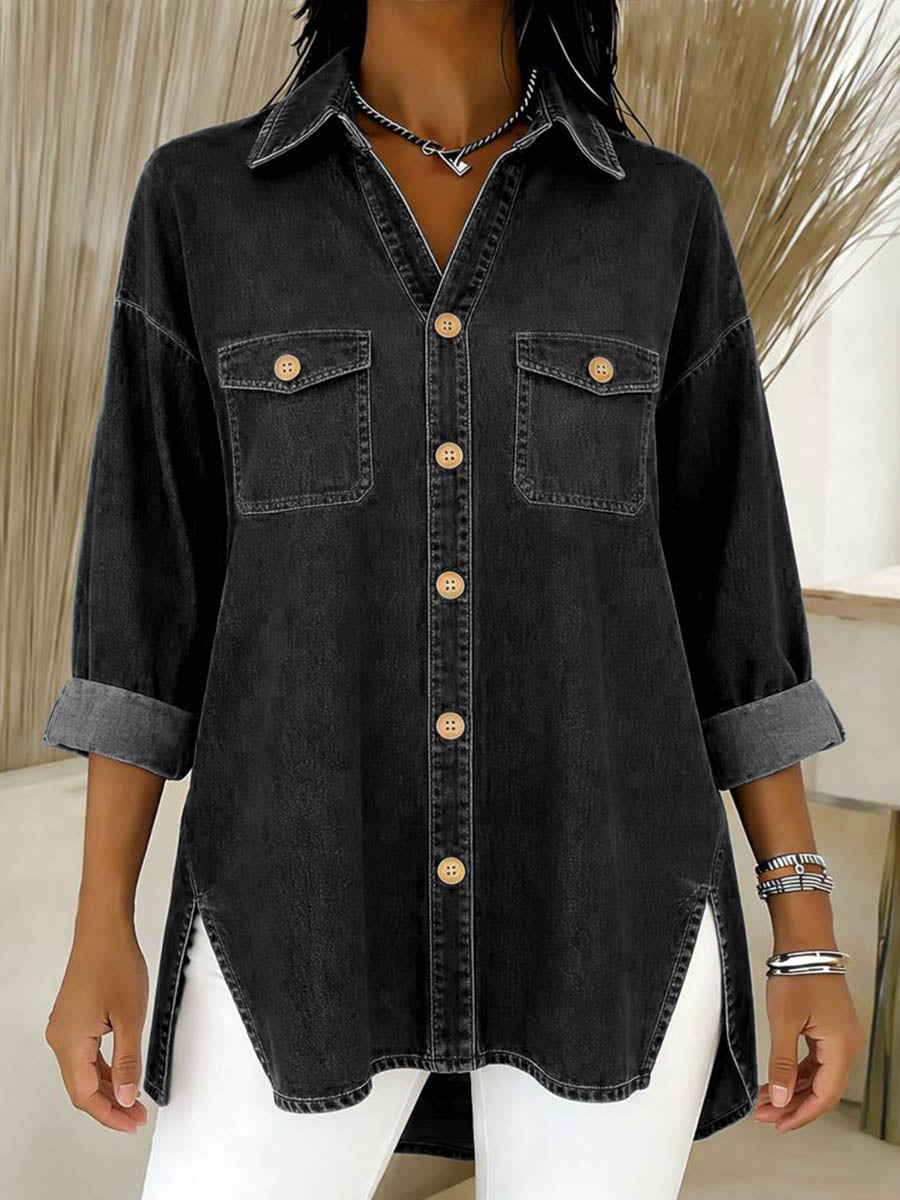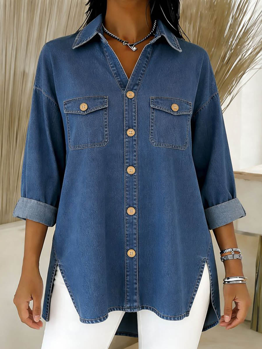 Women's Lapel Long-sleeved Casual Loose Denim Shirt